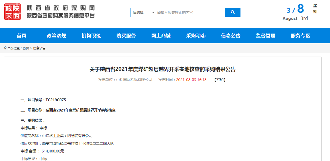 測繪院成功中標(biāo)陜西省2021年度煤礦超層越界開采實(shí)地核查項(xiàng)目 -